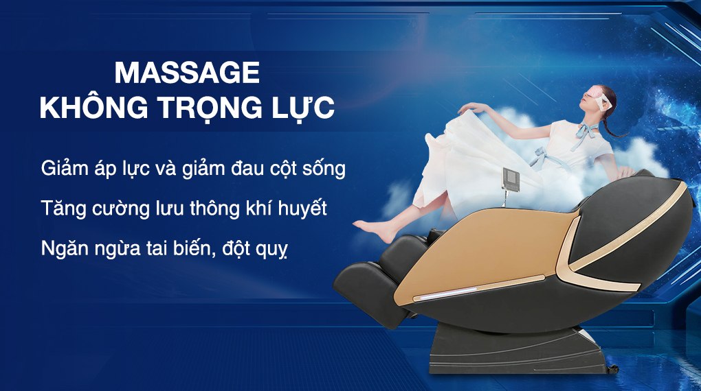Nếu bạn muốn giảm áp lực lên phần xương cột sống của bản thân thì chức năng massage không trọng lực là sự lựa chọn hoàn hảo. Ở chế độ này các máy sẽ ngã ra sau, đưa cơ thể bạn vào trạng thái cân bằng, mang đến cảm giác lơ lửng, tản lực đều ra toàn thân. Giúp giảm đau cột sống nhanh chóng, hỗ trợ cho quá trình lưu thông máu được tốt hơn, ngăn ngừa tai biến, đột quỵ,...