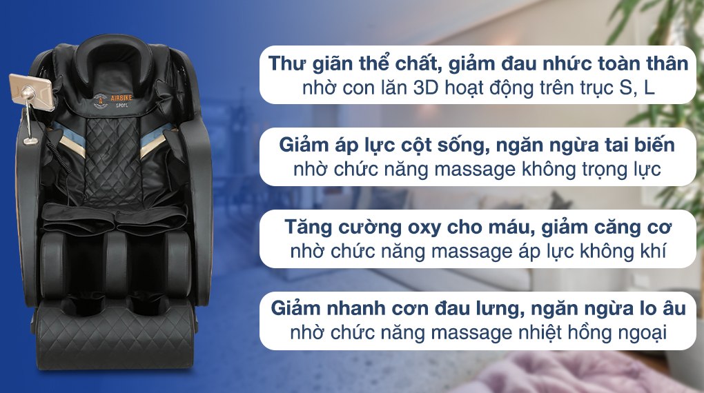 - Giảm đau nhức xương khớp với chức năng massage toàn thân cùng trục chữ S, chữ L mà không khiến bạn cảm thấy khó chịu.