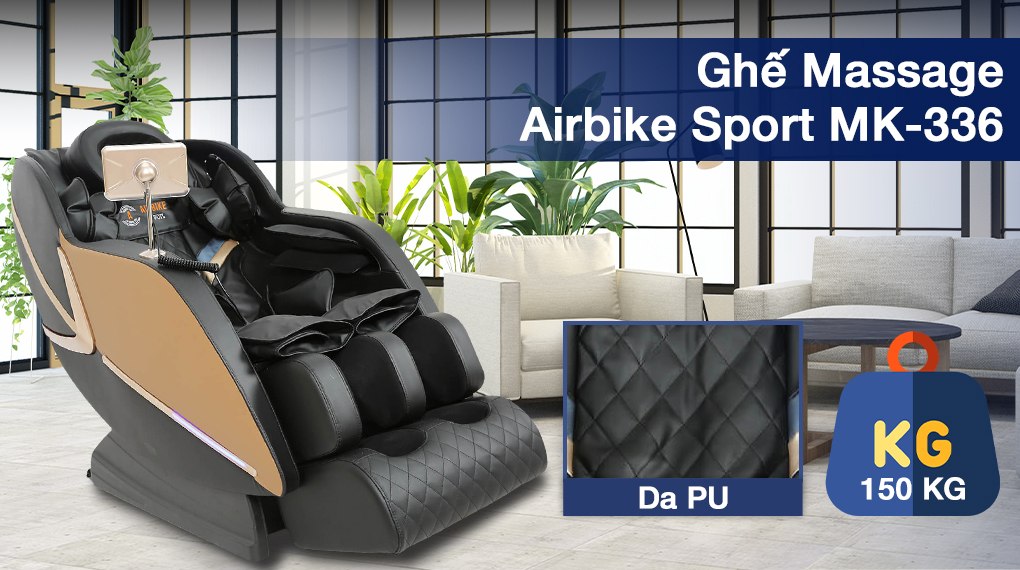 Ghế massage toàn thân Airbike Sport MK-336 là sản phẩm ghế massage cao cấp với tông màu đen sang trọng, kiểu dáng hiện đại phù hợp với nhiều thiết kế nội thất, không gian nhà ở khác nhau. Với lớp bọc da PU cao cấp, bạn sẽ được trải nghiệm cảm giác êm ái, thoải mái và dễ dàng vệ sinh sau khi sử dụng. Ngoài ra, ghế có thể chịu được tải trọng lên đến 150 kg, vậy nên không kén thể trạng người dùng Việt Nam.
