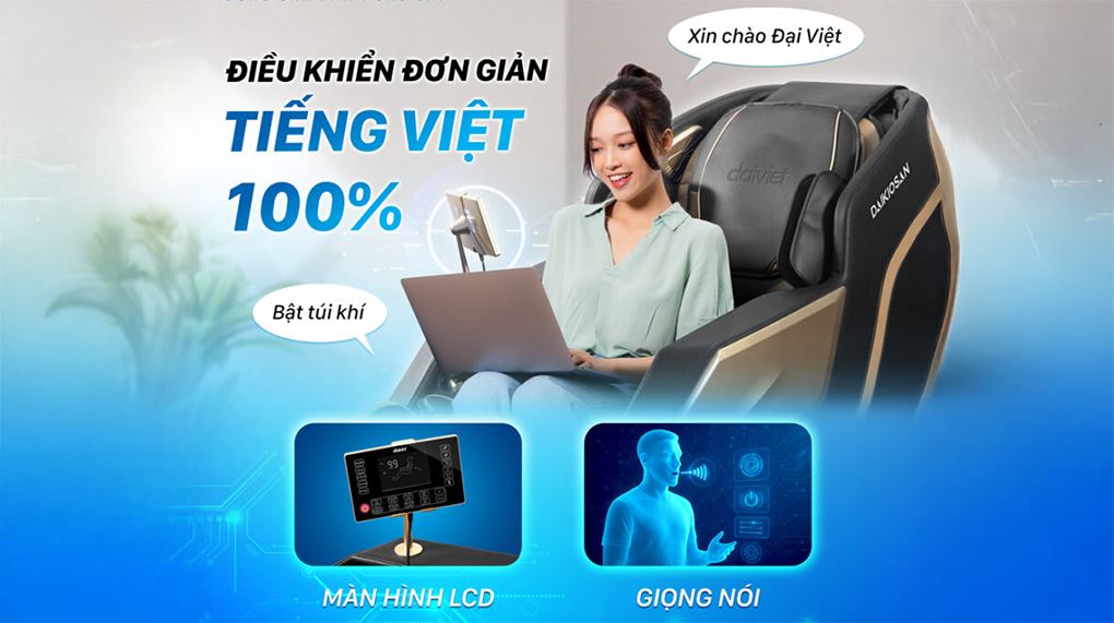 Một trong những ưu điểm nổi bật là giao diện LCD hoàn toàn bằng tiếng Việt, giúp người dùng dễ dàng thao tác, đặc biệt thân thiện với người lớn tuổi. Màn hình hiển thị đầy đủ thông tin các chức năng đang sử dụng, thuận tiện trong quá trình theo dõi và điều chỉnh. Ngoài ra, DC200 hỗ trợ điều khiển bằng giọng nói tiếng Việt, cho phép người dùng thao tác rảnh tay và thuận tiện hơn trong quá trình sử dụng, nhất là khi đang nằm thư giãn.