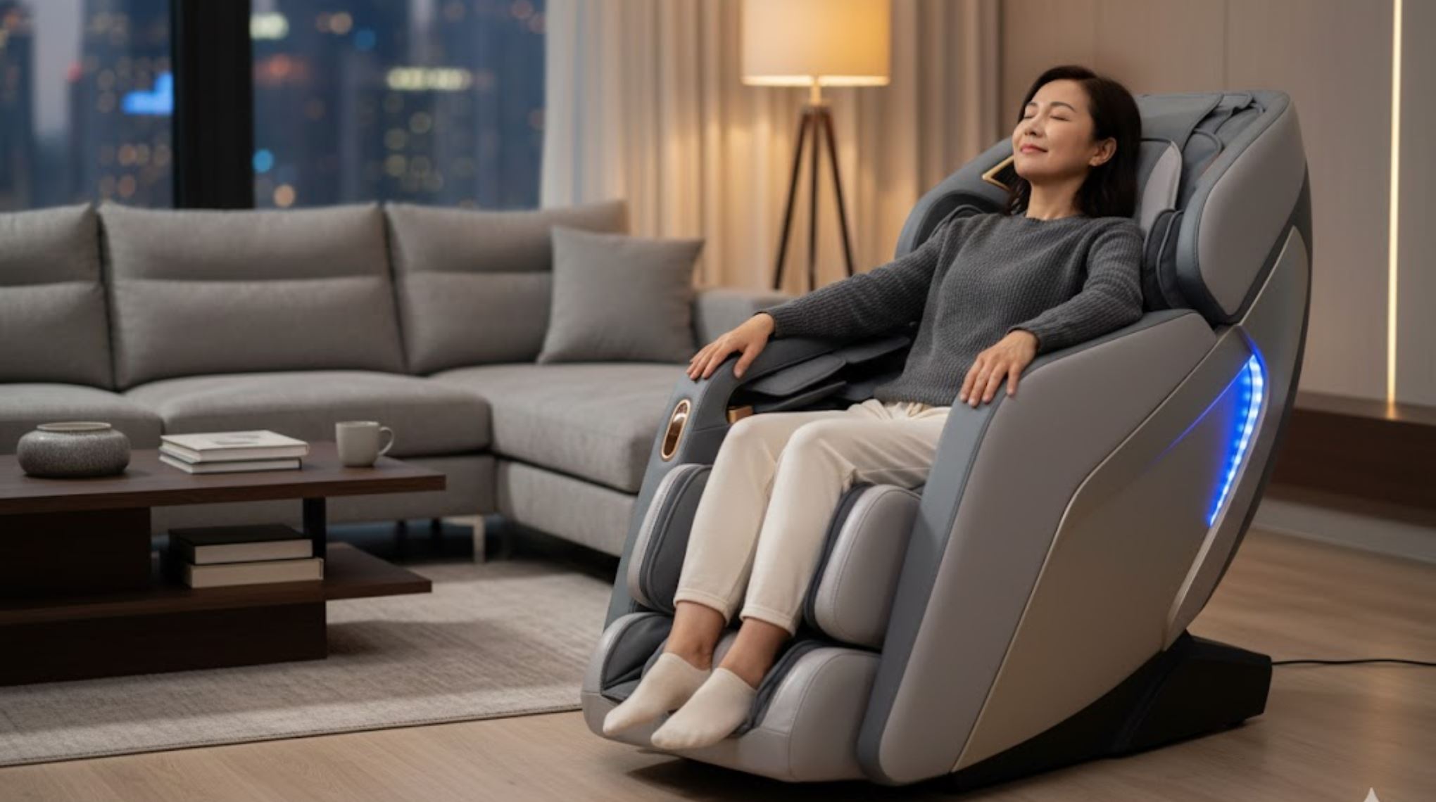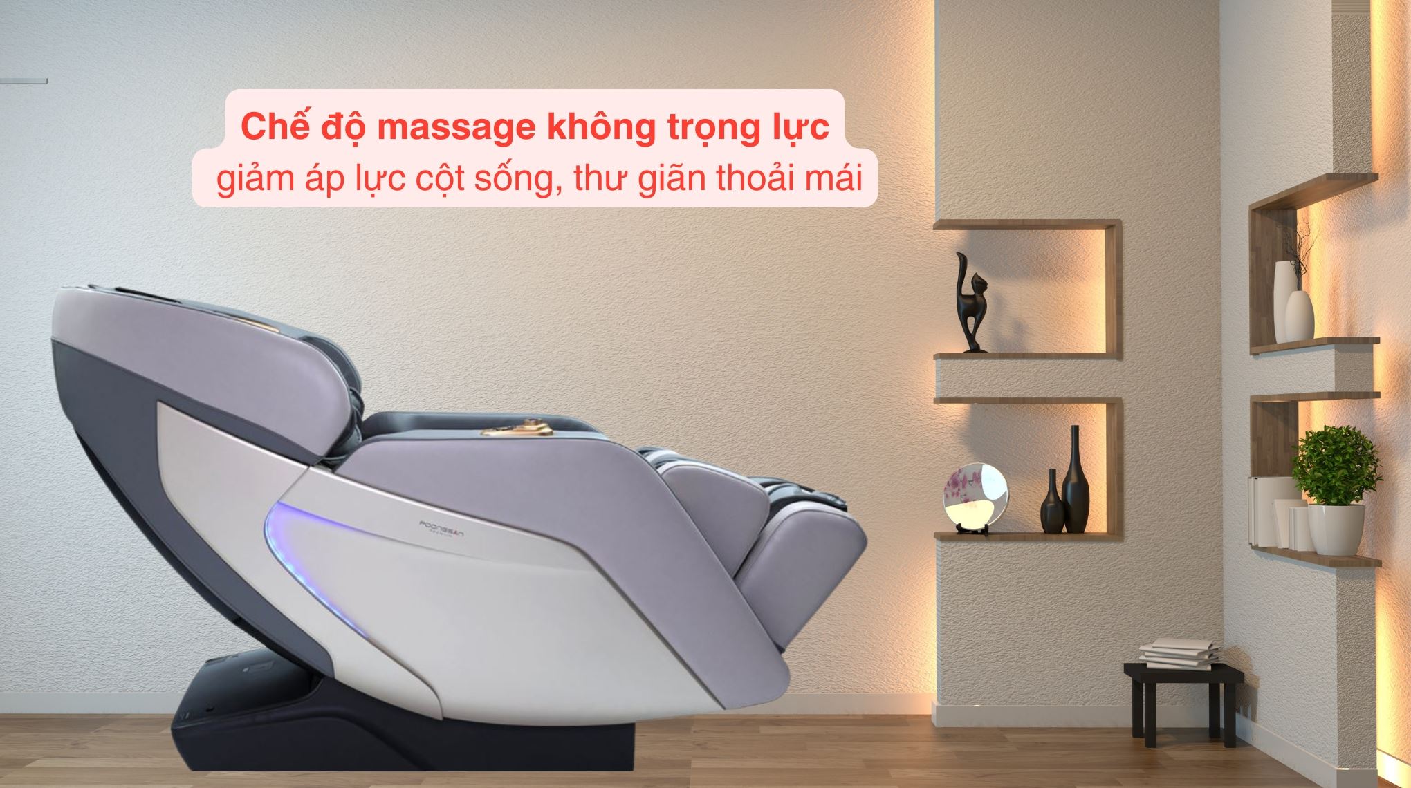 Chế độ massage không trọng lực cho phép ghế thay đổi góc ngả, đưa cơ thể về tư thế gần ngang, phân bổ lại trọng lượng lên lưng và chân.