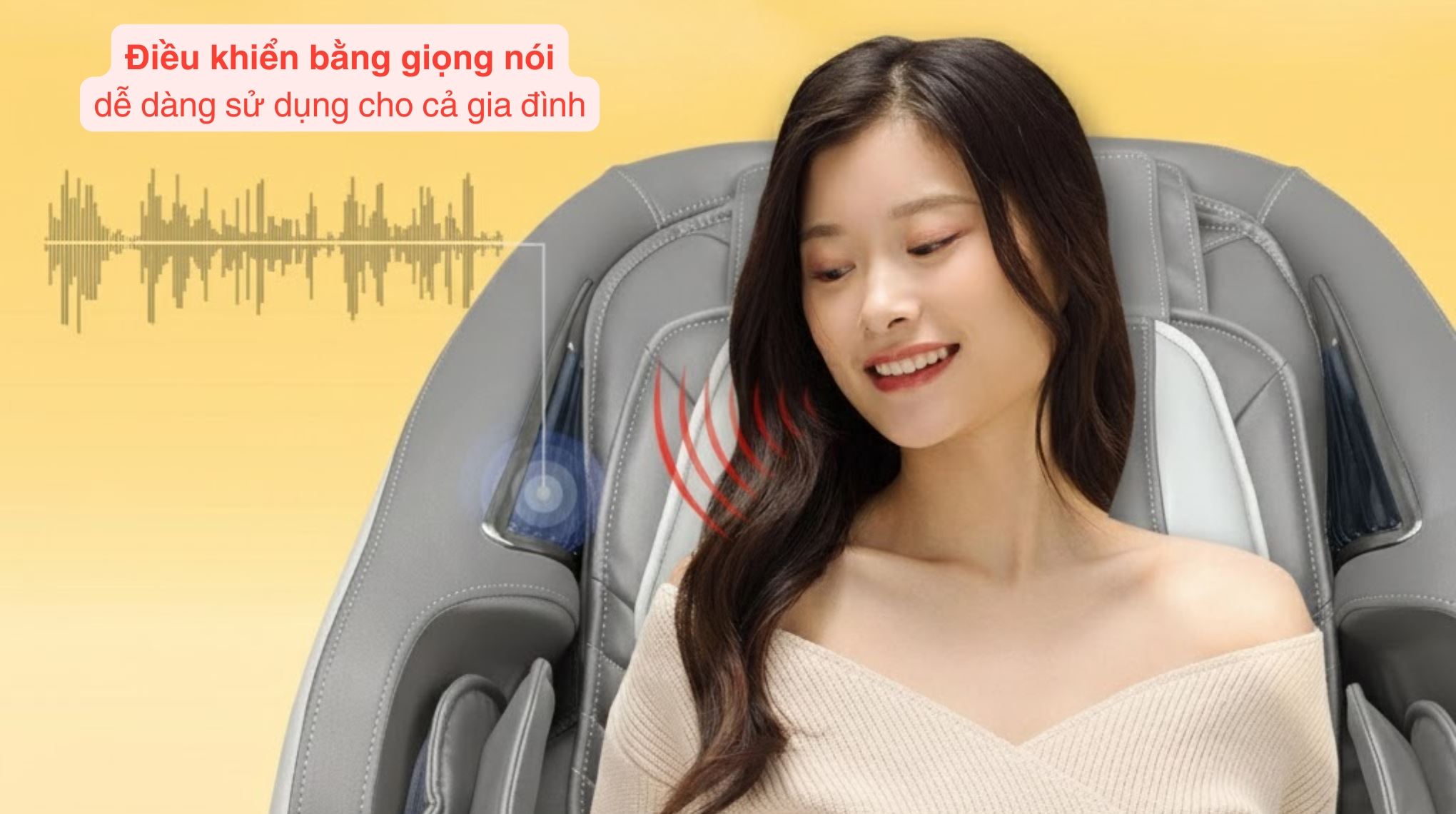 Bên cạnh đó, ghế còn hỗ trợ điều khiển bằng giọng nói cho một số lệnh cơ bản như bật/tắt, đổi chương trình hay điều chỉnh tư thế, giúp thao tác thuận tiện ngay cả khi tay đang bận. Thời gian mỗi lần hoạt động được giới hạn tối đa 40 phút nhằm bảo vệ người dùng và đảm bảo độ bền cho động cơ.