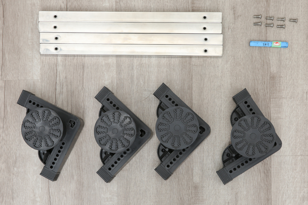 Khi mua chân đế máy giặt, tủ lạnh, bạn còn được trang bị một thước dây giúp bạn đo đạc chính xác khoảng cách của các cạnh khi lắp ráp sao cho vừa vặn với máy giặt, tủ lạnh của gia đình.