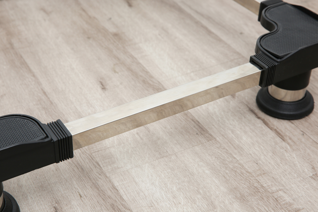 Các thanh liên kết được làm từ chất liệu inox cứng cáp, chống gỉ sét, tạo độ vững chắc ở cả 4 cạnh, giúp nâng đỡ tốt cho máy giặt có khối lượng giặt 6 - 9 kg và tủ lạnh có dung tích 90 - 270 lít.