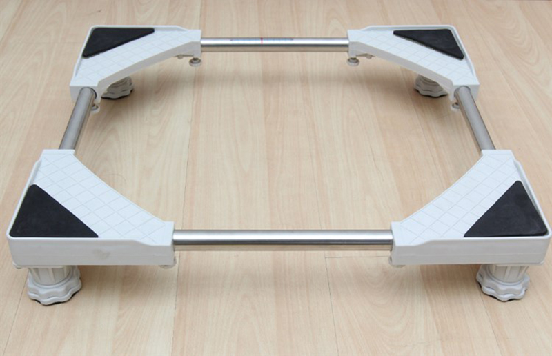 Chân đế máy giặt JH-WB-010 được thiết kế 4 thanh ngang inox cùng 4 trụ đỡ lớn bằng nhựa ở 4 góc cho khả năng chịu lực lớn lên đến 500 kg. Tuy nhiên, nếu sàn nhà dốc hoặc trơn, bạn nên dùng vật cứng lót thêm hoặc chặn lại ở 4 chân để khi hoạt động, máy giặt không bị run lắc.