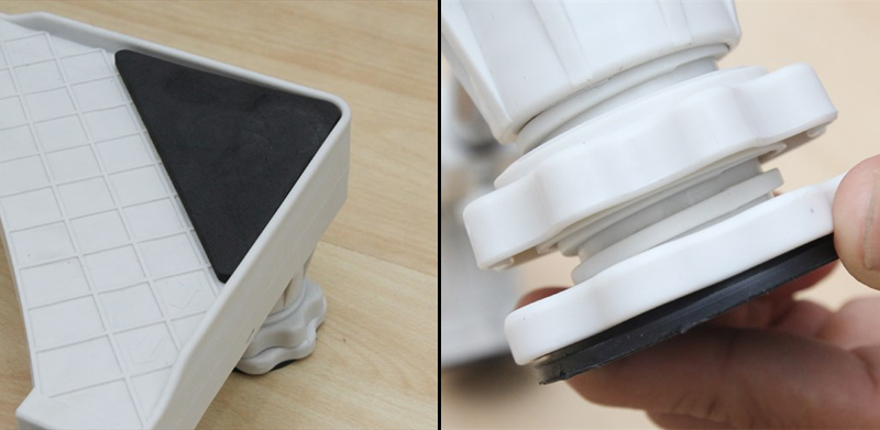 Giá đỡ JH-WB-010 với 4 chân trụ được thiết kế miếng lót cao su ở cả trên và dưới sẽ hạn chế vấn đề máy giặt rung lắc luôn làm người dùng khó chịu đặc biệt là khi máy đang quay vắt.