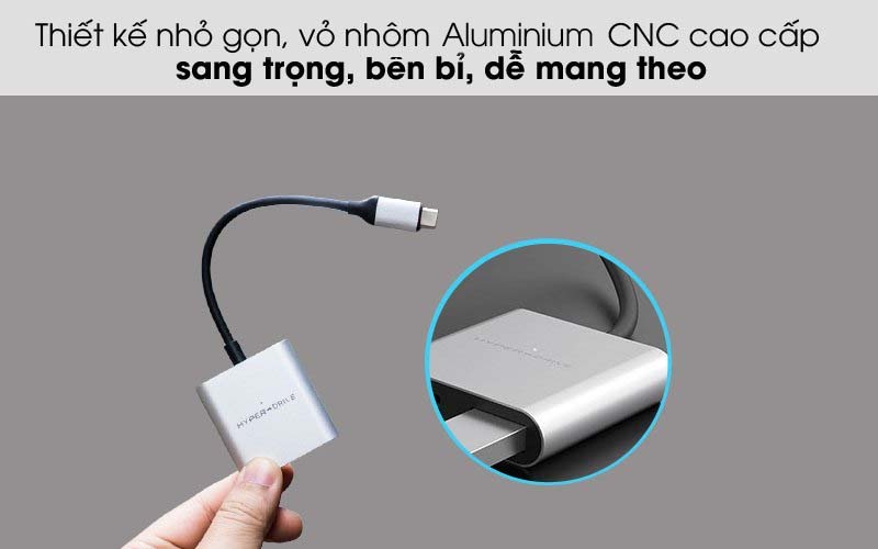 Adapter chuyển đổi Type-C 3 in 1 HyperDrive HD259A xám kích thước nhỏ gọn, Adapter dễ dàng đặt gọn trong tay cầm, bảo quản đơn giản trong balo, giỏ xách tay túi quần của bạn, tiện lợi mang theo.