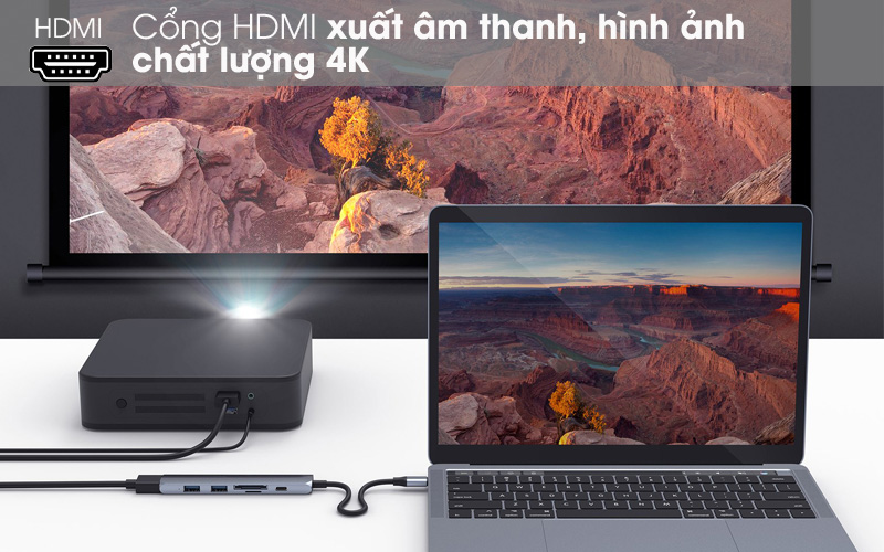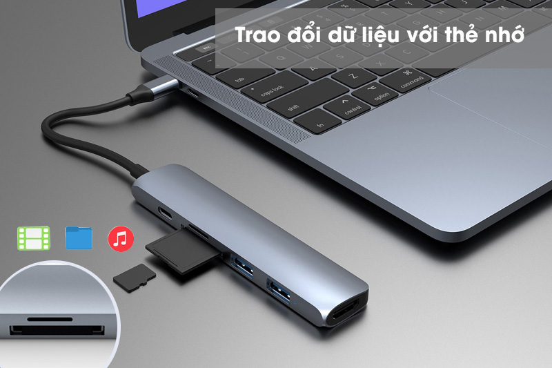 Bao gồm 2 cổng USB 3.0, cổng USB Type-C, cổng SD, Micro SD và cổng HDMI, thiết bị chuyển đổi từ cổng Type-C của Macbook gồm có Macbook Pro 12/13/15 inch 2016 - 2017, Macbook Air 13 inch 2018, iPad Pro 2018, Surface Go, Surface Pro X, Surface Pro 7, Surfacebook 2 13/15 inch, laptop Surface 3 13/15 inch hoặc các laptop có dùng Type-C ra 6 cổng kết nối tiện lợi.