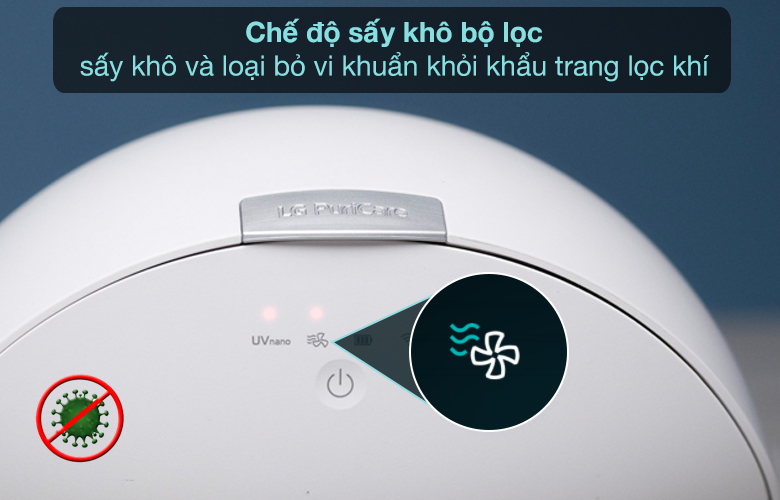 Chế độ sấy khô giúp sấy khô bộ lọc và loại bỏ vi khuẩn khỏi khẩu trang lọc khí