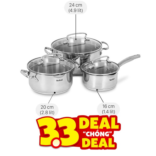 Nồi Bộ nồi và quánh inox 304 đáy từ Tefal Duetto Plus G719S674 - Bộ 3 cái 03/09 - 30/09/2025