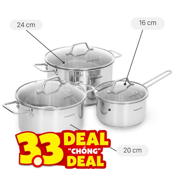 Nồi Bộ nồi quánh inox Sunhouse SHG601 - Bộ 3 cái 03/09 - 30/09/2025