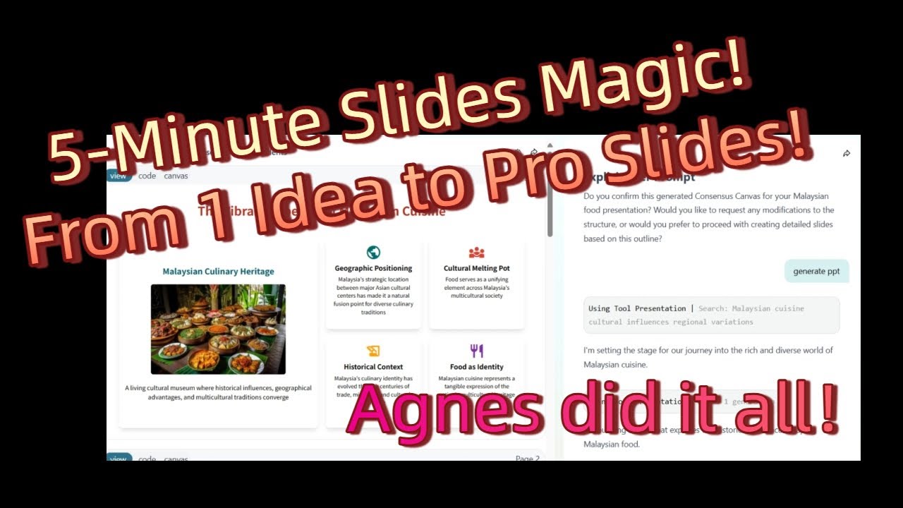 Người dùng chỉ cần nhập chủ đề mong muốn, Agnes AI sẽ tự động biên soạn nội dung và thiết kế toàn bộ các trang chiếu. Tính năng này cực kỳ hữu ích cho những ai cần phác thảo ý tưởng nhanh chóng mà không mất nhiều thời gian.
