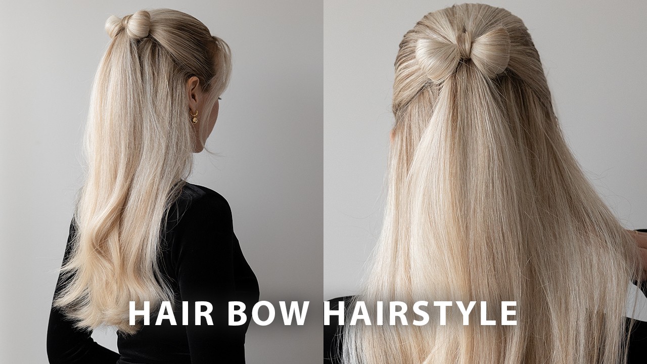 - Tóc buộc nửa đầu tạo hình thắt nơ dịu dàng, độc đáo.