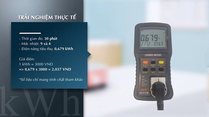Sau khoảng 30 phút sử dụng bếp để nấu 1 nồi canh thì tiêu tốn khoảng 0,679 kWh. Áp dụng giá điện 3000 VND/1 kWh thì số tiền điện bạn phải trả khoảng 2.037 VND.