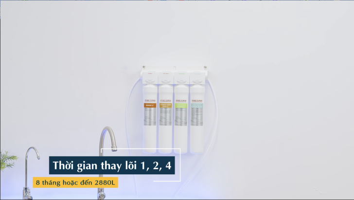 Để đảm bảo thay lõi đúng hạn thì bạn nên theo dõi và ghi chú lại. Vì sản phẩm không có đèn báo hay tem thay lõi. Các lõi lọc thô, lõi than hoạt tính, lõi ion đá bạc và khoáng cần được thay mới sau 8 tháng sử dụng hoặc sau khi lọc khoảng 2880 lít. Riêng lõi lọc UF thì lâu hơn một chút, sau 12 tháng hoặc sau khi lọc 4320 lít.