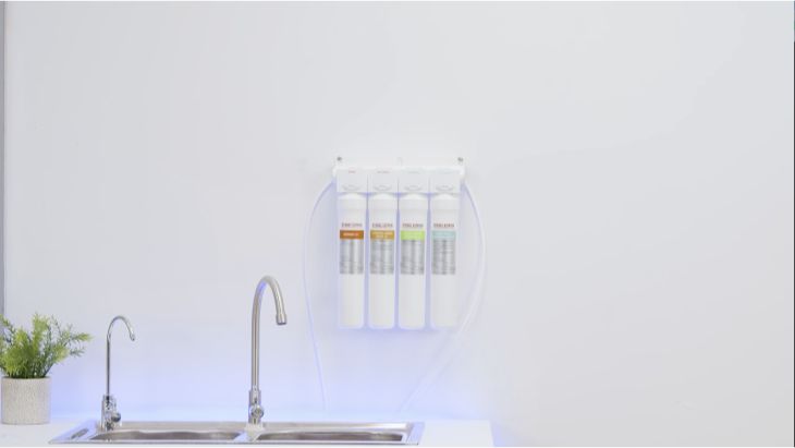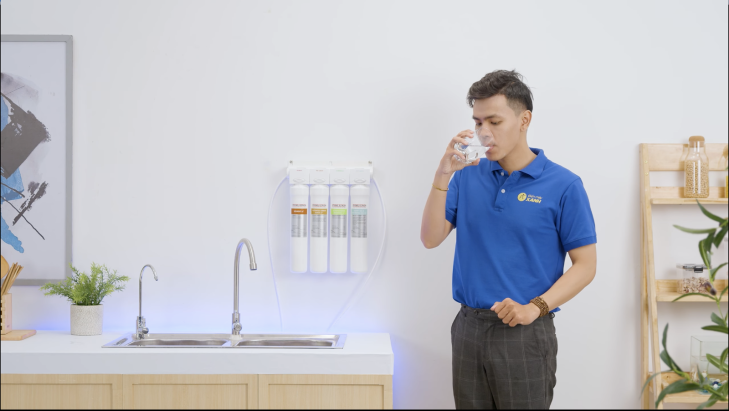 Nước đầu vào sẽ phải đi qua 5 cấp lọc của 4 lõi lọc để đảm bảo có thể uống trực tiếp, không cần đun sôi. Cụ thể: