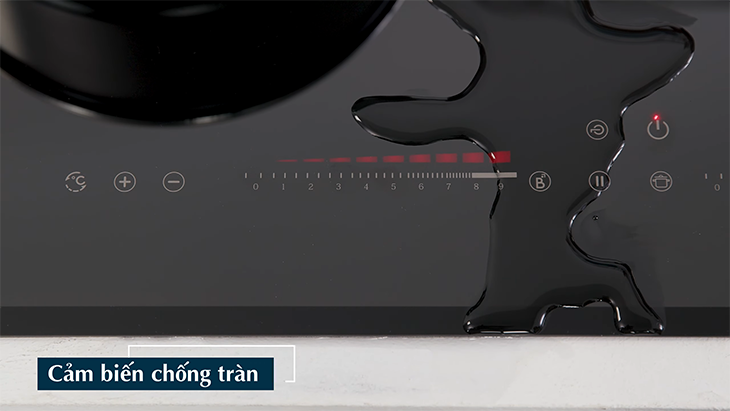 Bếp còn có cảm biến chống tràn. Khi nước canh, súp… bị tràn ra khỏi nồi xuống mặt bếp, bếp sẽ phát ra tiếng bíp cảnh báo và tự động ngắt điện.