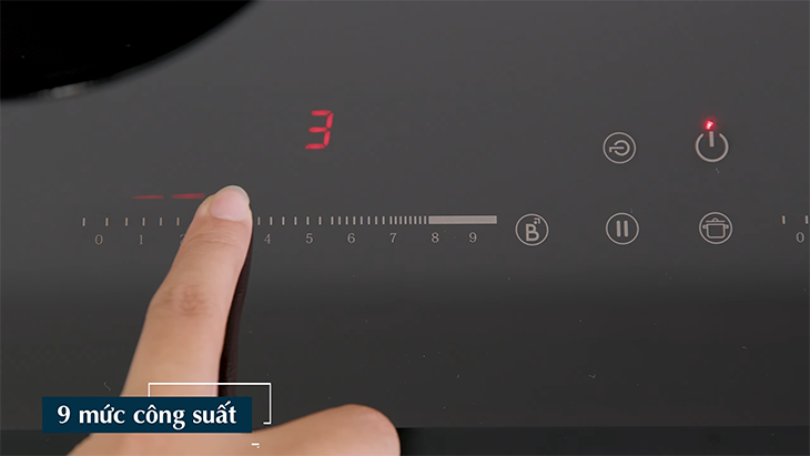 Ngoài Booster, mỗi vùng nấu đều có 9 mức công suất tùy chỉnh tăng giảm bằng cách lướt tay trên thang công suất. Nếu bạn muốn kiểm soát nhiệt độ lúc đun nấu thì bếp cũng có khả năng tùy chỉnh nhiệt độ. Bạn có thể tăng giảm giữa 5 mức nhiệt khác nhau bằng cách bấm liên tục vào nút nhiệt độ.