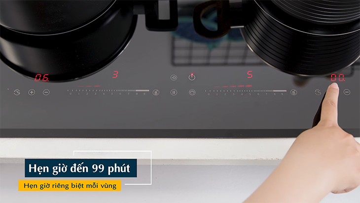 Như mọi bếp từ hiện đại khác, bếp từ đôi Sakura SE-1270B cũng có chức năng hẹn giờ đun nấu với thời gian lên tới 99 phút. Mỗi vùng nấu sẽ có nút hẹn giờ riêng, sau khi kết thúc thời gian đặt hẹn thì bếp sẽ phát ra tiếng kêu khá to để báo hiệu. Chức năng này vô cùng tiện lợi để bạn rảnh tay làm việc khác mà không cần phải đứng cạnh trông bếp, tuy là có hơi ồn ào một chút vì nếu bạn không tắt bếp ngay sau khi hết giờ thì bếp sẽ kêu liền trong ba phút.