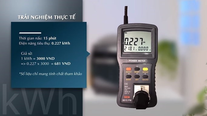 Mức điện năng tham khảo khi sử dụng lò chiên