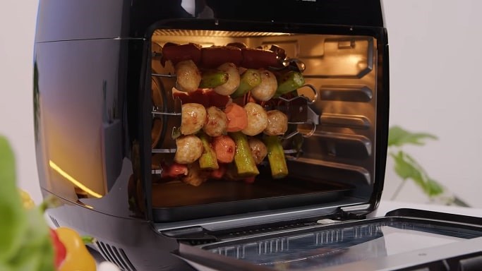 Và với công suất hoạt động 2000W thì mức điện năng tiêu thụ khi sử dụng lò cũng sẽ không nằm ở mức quá cao. Giả sử giá điện cho 1 kWh là 3000VND thì khi sử dụng lò để chiên nướng với mức nhiệt 180°C trong khoảng 15 phút thì bạn chỉ tốn khoảng 681 VND.