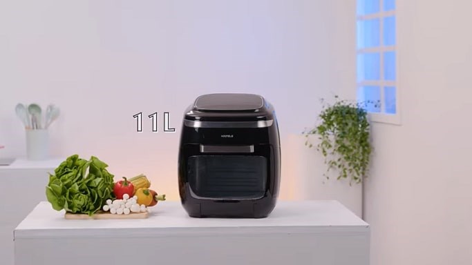 Lò chiên không dầu Hafele AF-602A có dung tích 11 lít phù hợp gia đình có đông thành viên. Tuy nhiên, nếu so với một số mẫu lò chiên không dầu có cùng dung tích thì độ rộng bên trong khoang lò của sản phẩm này vẫn chưa cho người dùng cảm giác “thoải mái” để trải nghiệm được hết dung tích thực của lò.