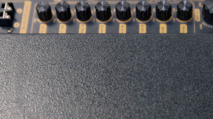 Nó được đặt ở trên, bao gồm các nút bấm và nút vặn vật lý, cùng một màn hình đèn điện tử nhỏ - những chi tiết này cũng tương tự như bao mẫu loa kéo karaoke khác.