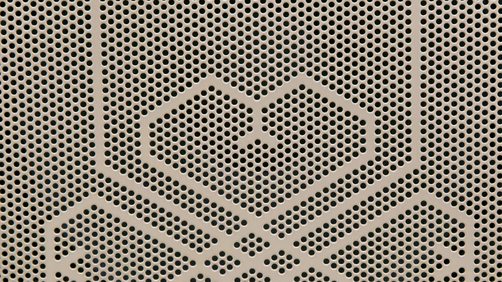Mobell trang bị cho loa phần ê-căng ở mặt trước được làm từ chất liệu kim loại và thiết kế dạng họa tiết trái tim, đồng thời phủ lớp sơn tĩnh điện màu vàng. Các tính chất này vừa giúp bảo vệ các củ loa bên trong vừa mang lại giá trị thẩm mỹ cho sản phẩm.