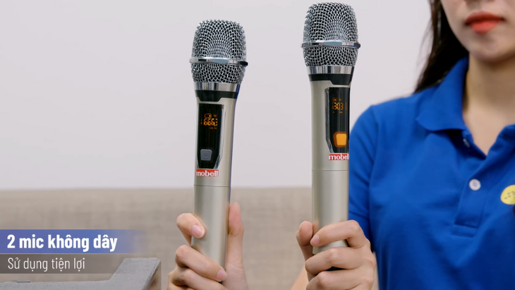 Mobell MK-6080 được trang bị kèm theo 2 micro không dây tuy nhiên có hạn chế là trên loa lại không có chỗ để micro.