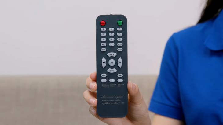 Bạn có thể dùng bộ điều khiển từ xa được trang bị kèm loa để điều khiển các tác vụ đơn giản và nhanh chóng như chuyển đổi kết nối, tăng giảm âm lượng, chuyển bài nhạc... Tuy nhiên với các tác vụ nâng cao hơn chẳng hạn chỉnh âm lượng cho từng dải âm hay hiệu ứng thì bạn vẫn phải làm trực tiếp trên bảng điều khiển.