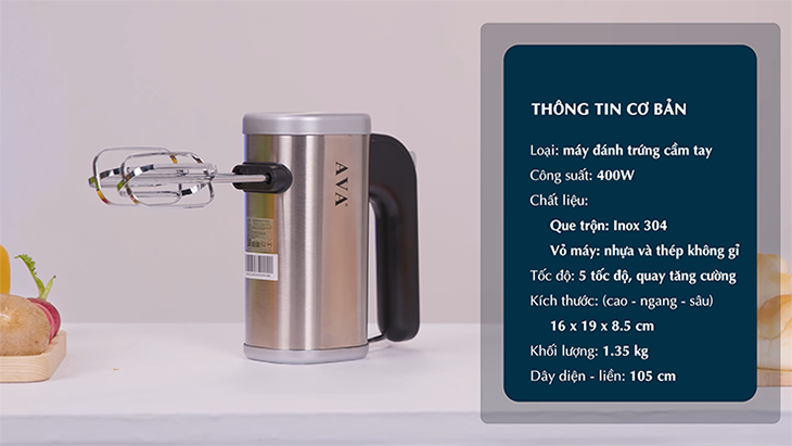 Với công suất 400W và 5 tốc độ khác nhau có thể tăng giảm linh hoạt trong lúc sử dụng, máy đánh trứng AVA HM-167 đảm bảo sẽ thỏa mãn mục tiêu trên, cho ra thành phẩm đạt chất lượng cao nhất với ít thời gian và công sức nhất.