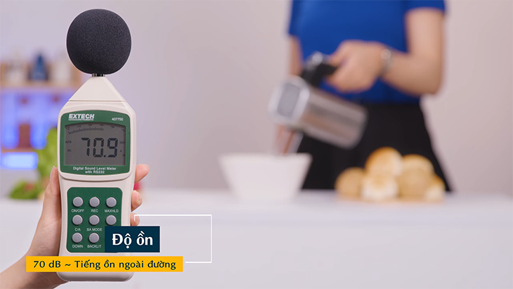 Độ ồn đo được trong lúc hoạt động của chiếc máy này là 70 dB – hơi nhỉnh hơn các máy đánh trứng khác, nhưng không vượt quá ngưỡng gây khó chịu.