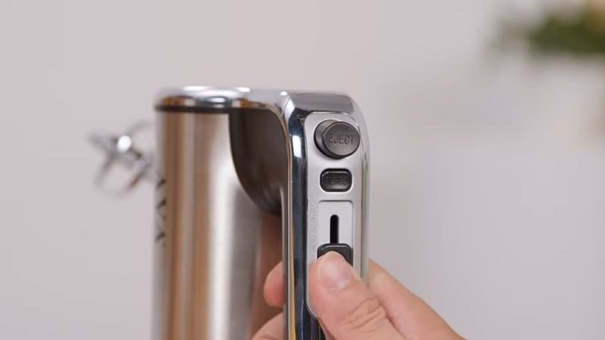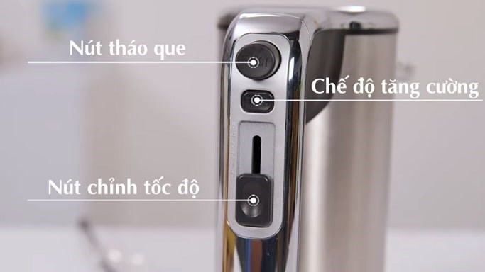 Phần điều khiển của máy được thiết kế ngay trên tay cầm với 2 nút nhấn và 1 nút gạt. Tùy vào từng loại thực phẩm mà bạn sẽ lựa chọn tốc độ đánh cho phù hợp. Cụ thể: