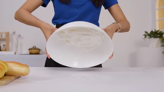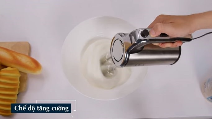 Với nguyên liệu là lòng trắng trứng, khi thao tác lần lượt cho máy đánh ở tốc độ thấp trước trong 10 giây. Sau đó nhấn và giữ nút Turbo để đưa lên đánh ở mức cao nhất và cho thêm một chút đường. Đánh thêm khoảng 2 phút thì cho ra thành phẩm trứng bong trắng, mềm mịn, úp ngược không bị đổ ra.