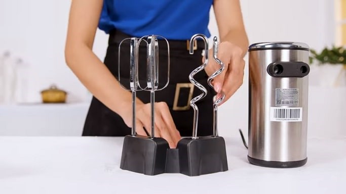 Máy đánh trứng tầm giá “dễ chịu” và “chịu khó” trang bị thêm đế đựng que đánh giúp việc đánh trứng, trộn bột đã nhẹ tay nay lại càng trở nên gọn gàng.