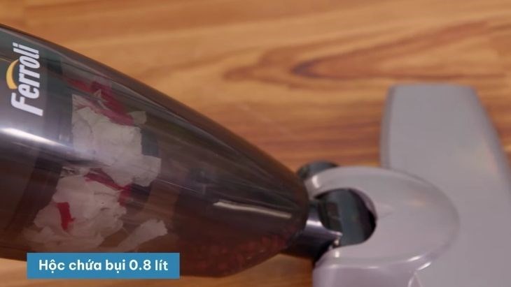 Lớp bụi máy hút được sẽ đi vào hộp chứa bụi có dung tích 0.8 lít
