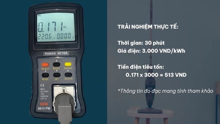 Sau 30 phút sử dụng, đây là lượng điện máy đã tiêu thụ, mời các bạn tham khảo.