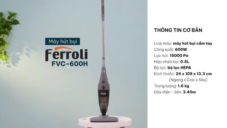 Máy hút bụi Ferroli FVC-600H giá rẻ, nhỏ gọn, lực hút mạnh xử lí bụi siêu nhỏ.