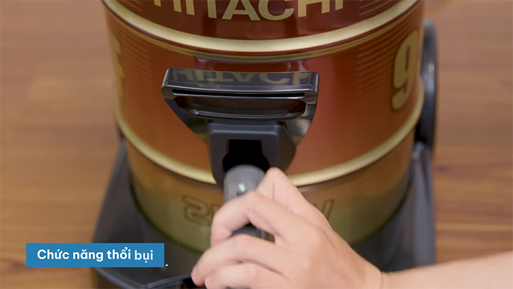 Một điểm vô cùng đặc biệt của máy hút bụi Hitachi CV-950F WR đó là ngoài chức năng hút, máy còn có chức năng thổi bụi, rất hữu dụng khi bạn cần thổi lá rụng, dọn dẹp bàn phím máy tính hay thổi bay bụi bẩn kẹt lâu ngày trong các kẽ nhỏ. Để sử dụng chức năng này, bạn chỉ cần tháo đầu cắm ống khỏi thân và lắp vào đầu thổi nằm trên nắp máy.