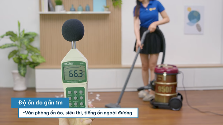 Một vấn đề khiến nhiều người phải cân nhắc khi chọn máy hút bụi là tiếng ồn. Ê kíp Điện Máy Xanh đã dùng máy kiểm tra độ ồn ở khoảng cách 1 m khi máy hoạt động, và kết quả cho ra là 66.3 dB, bằng với tiếng ồn thường ngày trong văn phòng hoặc siêu thị và vẫn nằm trong mức thoải mái đối với tai người.