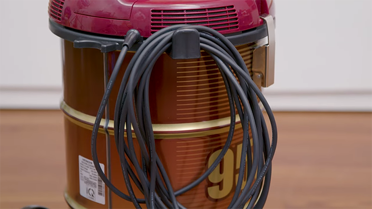 Máy có ba tay cầm, một tay cầm trên nắp để di chuyển máy, hai tay cầm còn lại ở trên thân và trên chân đế để hỗ trợ vệ sinh thùng chứa. Máy có thể di chuyển qua mọi địa hình nhờ bốn bánh xe được gắn dưới chân đế. Bạn cũng không cần bận tâm về phạm vi hoạt động của chiếc máy này, vì máy có dây nguồn dài tới 7,55 m, có thể cuộn lại và gài gọn lên móc treo ở hông máy khi không cần dùng tới.