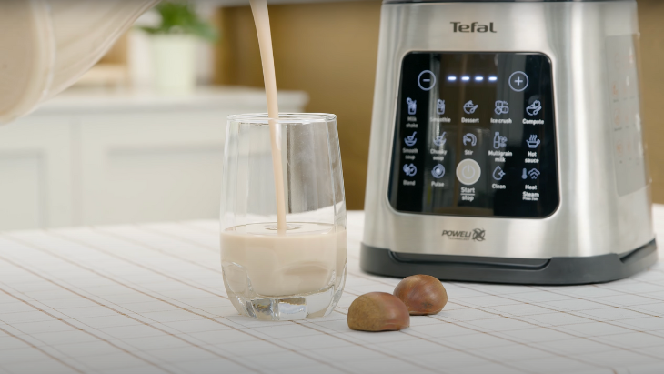 Bằng chứng là khi trải nghiệm làm sữa hạt dẻ bằng chiếc máy xay đa năng Tefal này. Trong khi hạt dẻ là một loại hạt có kết cấu cứng nhưng được máy xử lý xay nấu gọn gàng chỉ trong 30 phút. Sữa sau khi nấu xong uống không bị lợn cợn, không cần phải rây lọc lại mà chất sữa vẫn lỏng, thơm béo và sánh mịn.