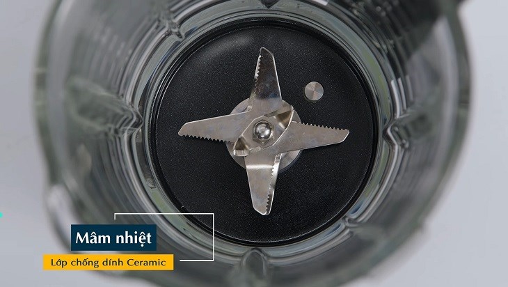 Mâm nhiệt phủ lớp chống dính Ceramic ở đáy cối xay rất an toàn khi dùng cho thực phẩm, không tiết độc tố trong quá trình xay và tránh ám mùi nguyên liệu. Ngoài ra còn hạn chế trường hợp bị khê, cháy, hoặc bám dính sữa, cháo dưới đáy cối trong khi hoạt động, giúp việc chùi rửa được tiện lợi hơn.