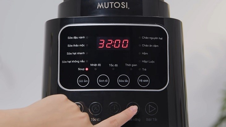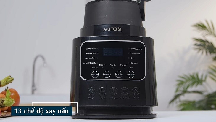 Máy làm sữa hạt Mutosi có 13 chương trình cài đặt sẵn: cháo nguyên hạt, cháo ăn dặm, giữ ấm, hấp/luộc, hầm, nấu súp, sinh tố, sữa hạt không nấu, sữa hạt nhanh, sữa lắc, sữa thảo mộc, sữa đậu nành, trà, vệ sinh máy.