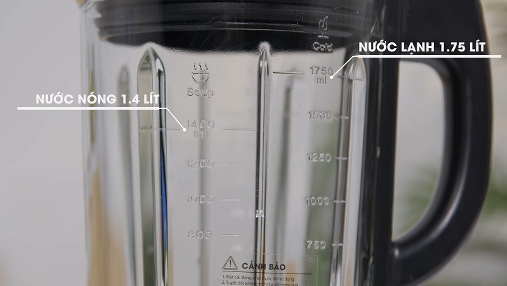 Dung tích tối đa của cối xay là 1.4 lít đối với thực phẩm nóng và 1.75 lít đối với thực phẩm lạnh, có thể xay được nhiều thực phẩm cùng lúc. Tuy nhiên mỗi một chế độ xay nấu đều có khoảng mực nước và nguyên liệu riêng được ghi chú cụ thể trong sách hướng dẫn kèm theo sản phẩm, bạn nên làm theo hướng dẫn để tránh tình trạng bị thừa nguyên liệu hoặc nước, máy sẽ báo lỗi không thể xay được.