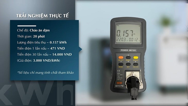 Ngoài ra máy sẽ tự ngắt khi quá nhiệt, khi đoản mạch hoặc khi quá tải, hạn chế cháy nổ trong quá trình sử dụng. Dưới đây là bảng tham khảo lượng điện năng tiêu thụ khi sử dụng máy làm sữa hạt Mutosi để nấu cháo ăn dặm 30 lần, mỗi lần khoảng 20 phút, các bạn có thể tham khảo:
