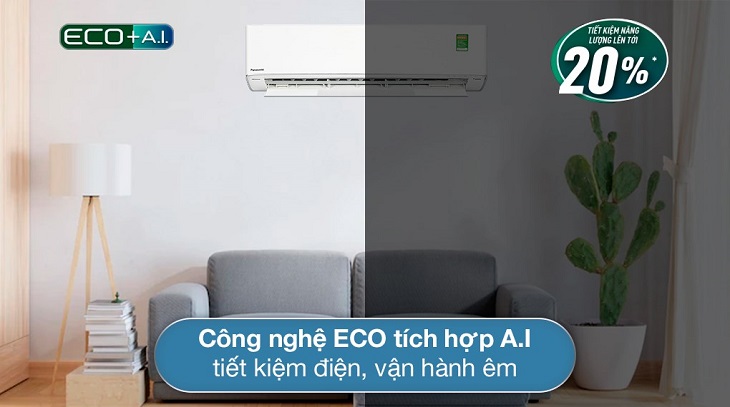 Chế độ ECO tích hợp AI (Bộ điều khiển trí tuệ nhân tạo) có thể nhận biết và đánh giá được mức ECO tối ưu, nhờ đó tối đa hóa việc tiết kiệm điện năng đến 20% mà vẫn đảm bảo được hiệu quả làm mát cho căn phòng.