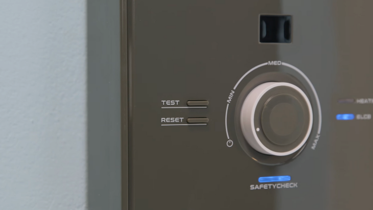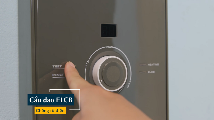 Ngoài ra, hai nút bấm luôn phải có trên các máy nước nóng hiện nay là nút test và nút reset đây. Đây là 2 nút dùng để kiểm tra tình trạng của cầu dao chống rò điện ELCB.