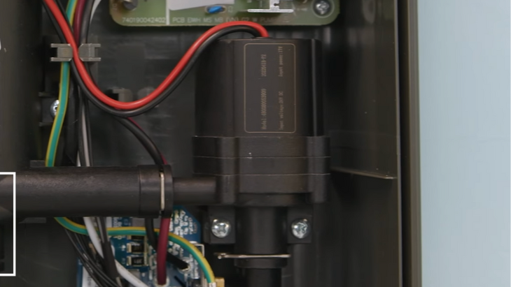 Bên trong máy nước nóng, kế bên bơm trợ lực là hệ thống bình đun. Công suất đun lên đến 4500W, nhiệt độ của bình đun sẽ lên khá cao, nước sẽ chảy qua bình đun và tăng nhiệt độ lên.