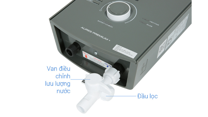 Máy đi kèm van nước đầu vào có thể tùy chỉnh được lưu lượng nước. Bên trong van có tích hợp bộ lọc cặn. Bộ lọc này có chức năng giữ các chất bẩn có kích thước lớn trong nguồn nước như bụi bẩn, sỏi, cát để nước vào bên trong máy sạch sẽ, tránh bị tắt nghẹt.